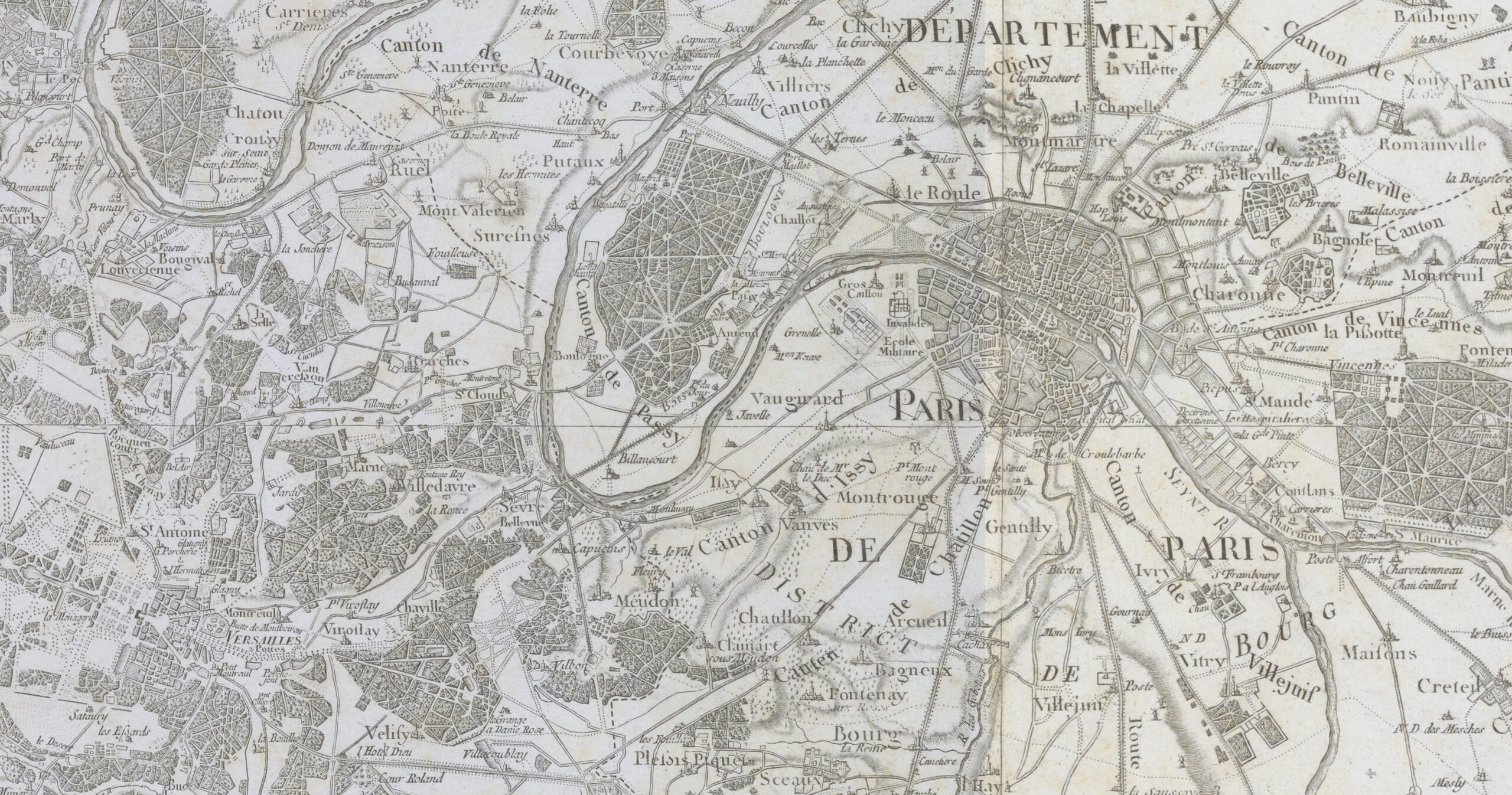 Figure 2. Detail from an impression, taken after 1790, from Cassini III, Carte de France levée par ordre du Roy, première feuille (Paris, 1750).