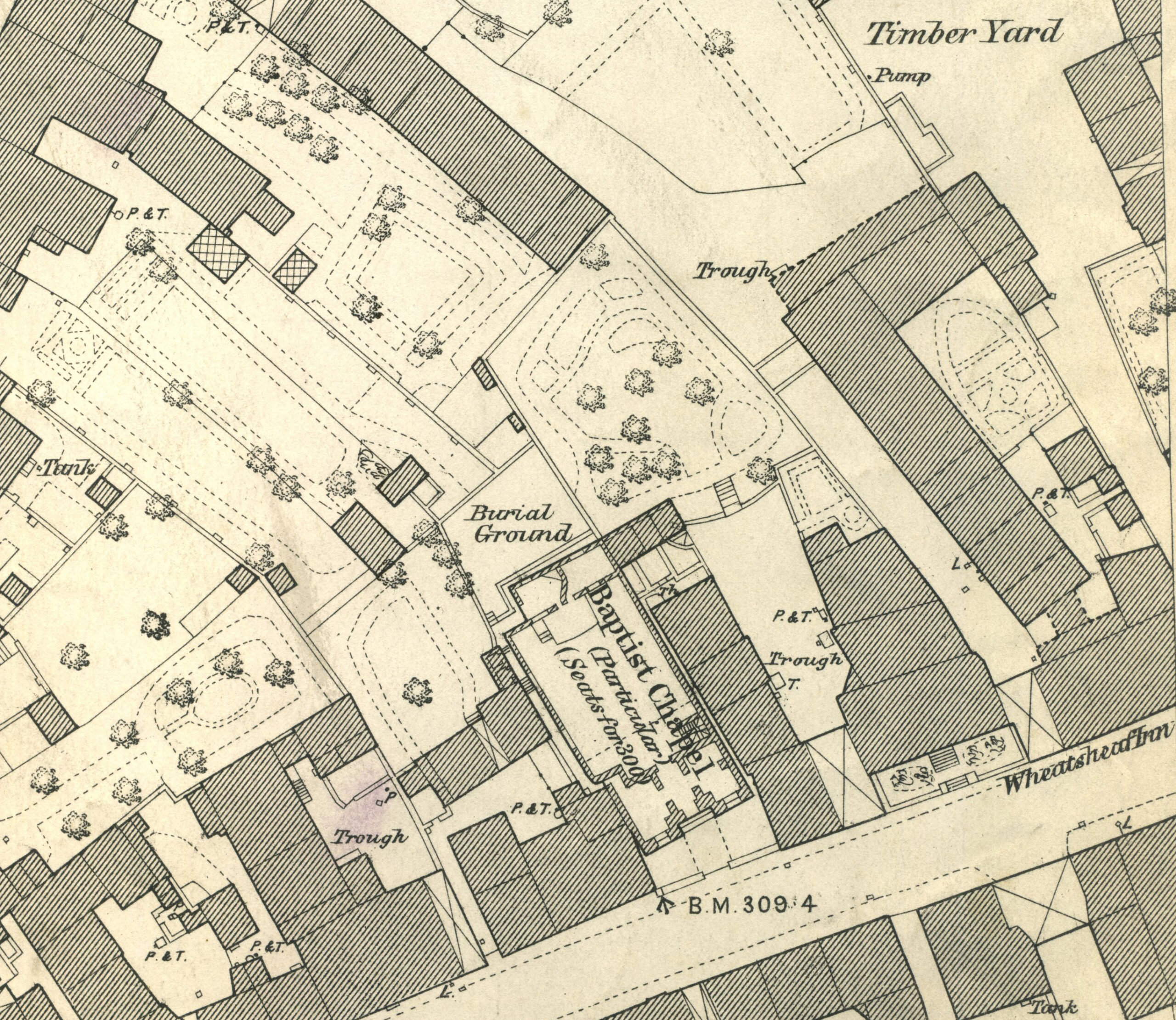 Figure 7. Detail from the 1:500 Ordnance Survey town map of Whitchurch, Shropshire, Sheet 7.4.4 (1880).