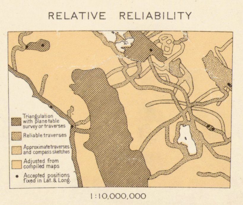 Thus, the interior of South America, though, to the eye, well filled in upon the map, offers but a distant approximation to truth; and when, in after years, the axe shall have cleared the secular forests of that portion of the New World, and the vast regions that extend from the Andes to the Atlantic, shall be covered with the abundant harvests and the habitations of a dense population, the maps of the country then constructed will, upon a comparison with those now existing, show our descendants how wide of the truth were our maps in the position of many places, and how totally different the true course of its rivers from what we now figure them with such show of accuracy.… The greater part of Europe alone and of the United States may be said to be correctly mapped from trigonometrical surveys. Indeed, if nothing were set down on the maps of other parts of the earth but what has been really determined in a satisfactory manner, the maps of them would present, for the most part, so much blank paper.